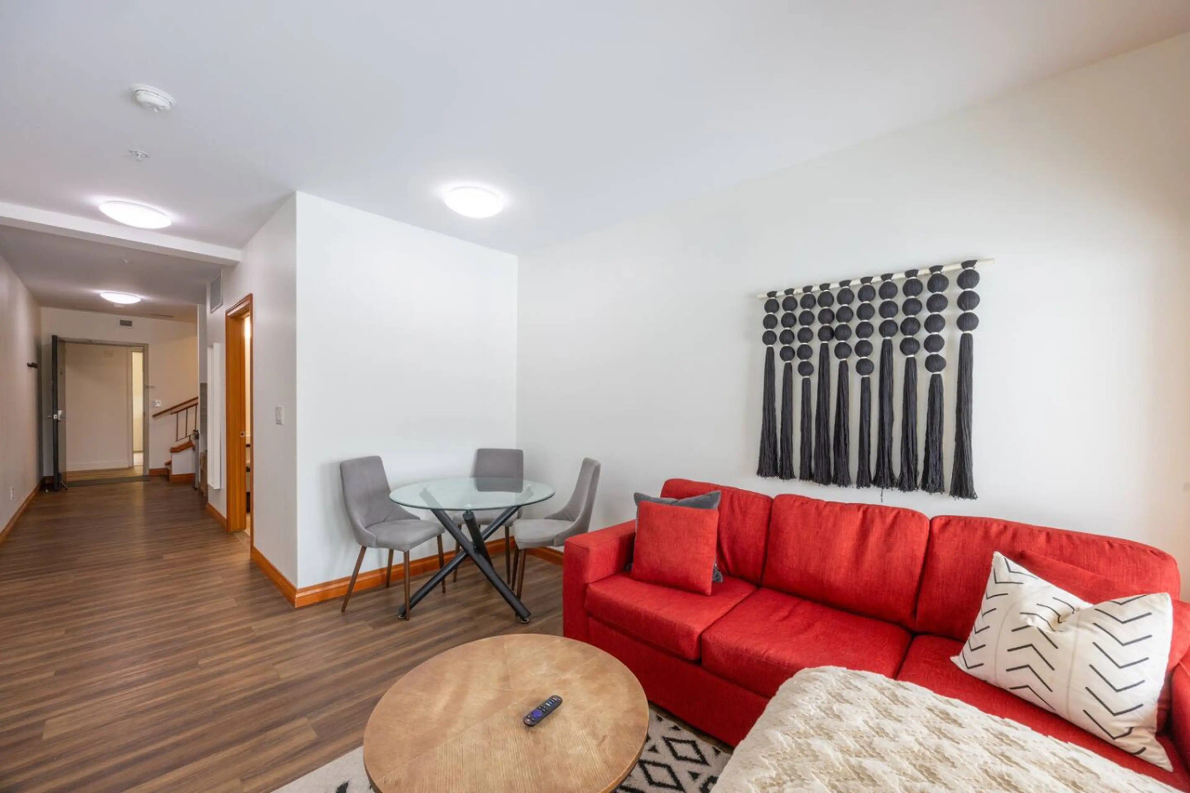 Suite 2 at The Gem Stays is a thoughtfully designed two-level suite offers a comfortable stay for families, small groups, and business travelers. The main floor includes the living area, kitchenette, and an accessible full bathroom, while the bedrooms are located on the second level of the suite. I...